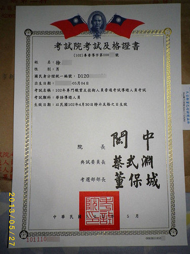 沒想到考試院很快地就寄來了華語導遊人員考試及格證書。