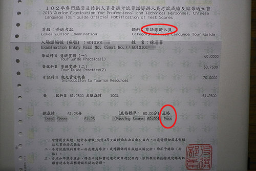 只是華語導遊考試及格證書得先花512元,還要等六月底才會寄來。