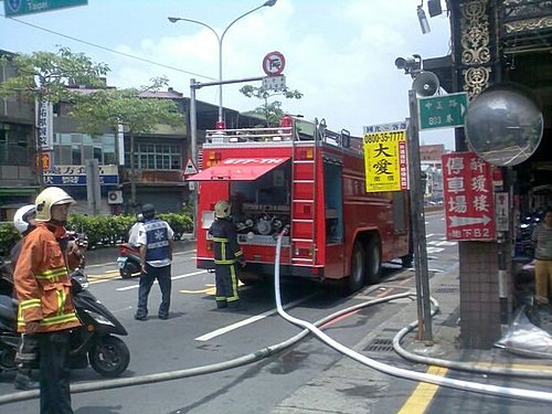 這場火災發生在我們社區,在我們家的後面一條巷子,所以中午回家時大吃一驚。另外照片中雲梯車灌救的803巷則是我們租給房客的同一條巷子,距離很近!
